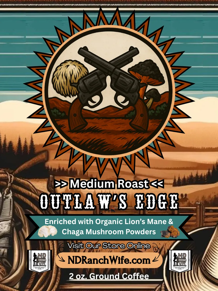 Step beyond the ordinary with Outlaw’s Edge, a medium roast coffee that combines premium beans with the natural power of Lion’s Mane and Chaga mushrooms.